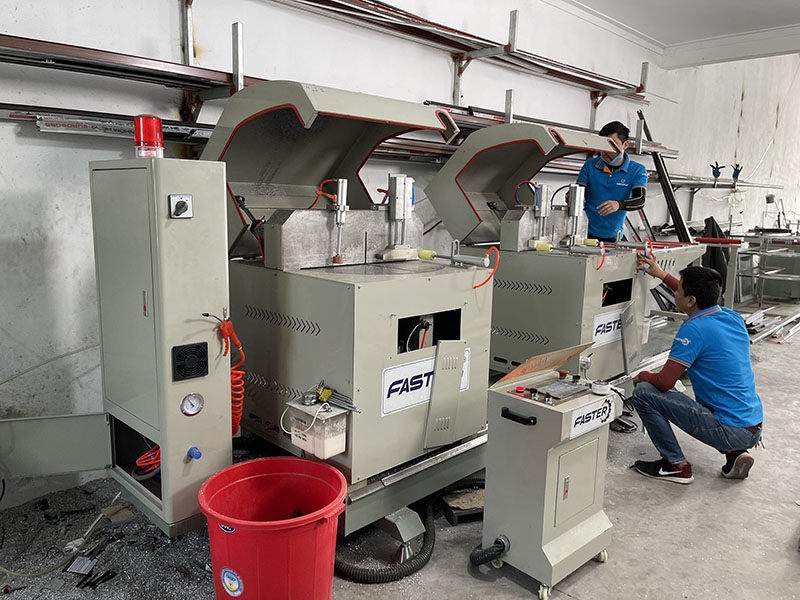 – Tiến hành ép góc khung, cánh cửa đi, cửa sổ. Đảm bảo ép góc chính xác.