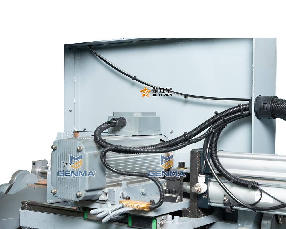 3. Ống dẫn khí và dây điện của đầu máy bên phải được lắp vào xích đỡ, không dễ bị hư hỏng khi di chuyển. Sau khi đặt phôi lên bàn máy, người vận hành chỉ cần nhấn nút vận hành và phôi trên máy công cụ được kẹp, bộ phận bảo vệ được đóng lại và lưỡi cưa được nạp và cắt cùng một lúc. Sau khi cắt xong, nhả nút, lưỡi cưa sẽ tự động quay trở lại, phôi sẽ tự động nhả ra và tấm chắn sẽ tự động mở lên trên.